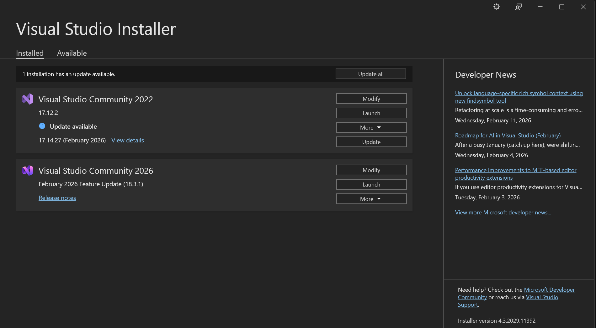 After downloading it, it'll open an instance Visual Studio Installer. Click through all of the pages and don't change any of the default stuff. Once if finishes installing, it will appear alongside and other versions you already have.